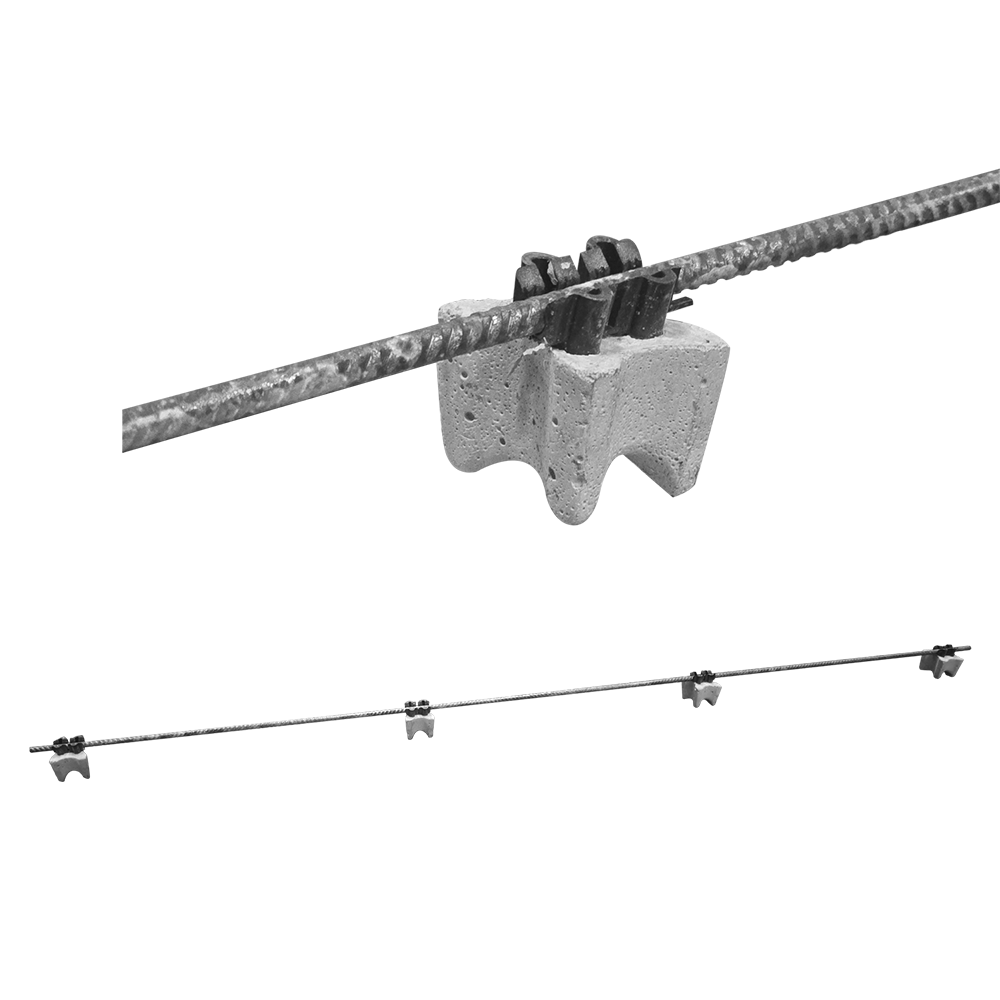 • 1200 mm langer Sichtbetonabstandhalter für Rundeisen- und Mattenbewehrungen.